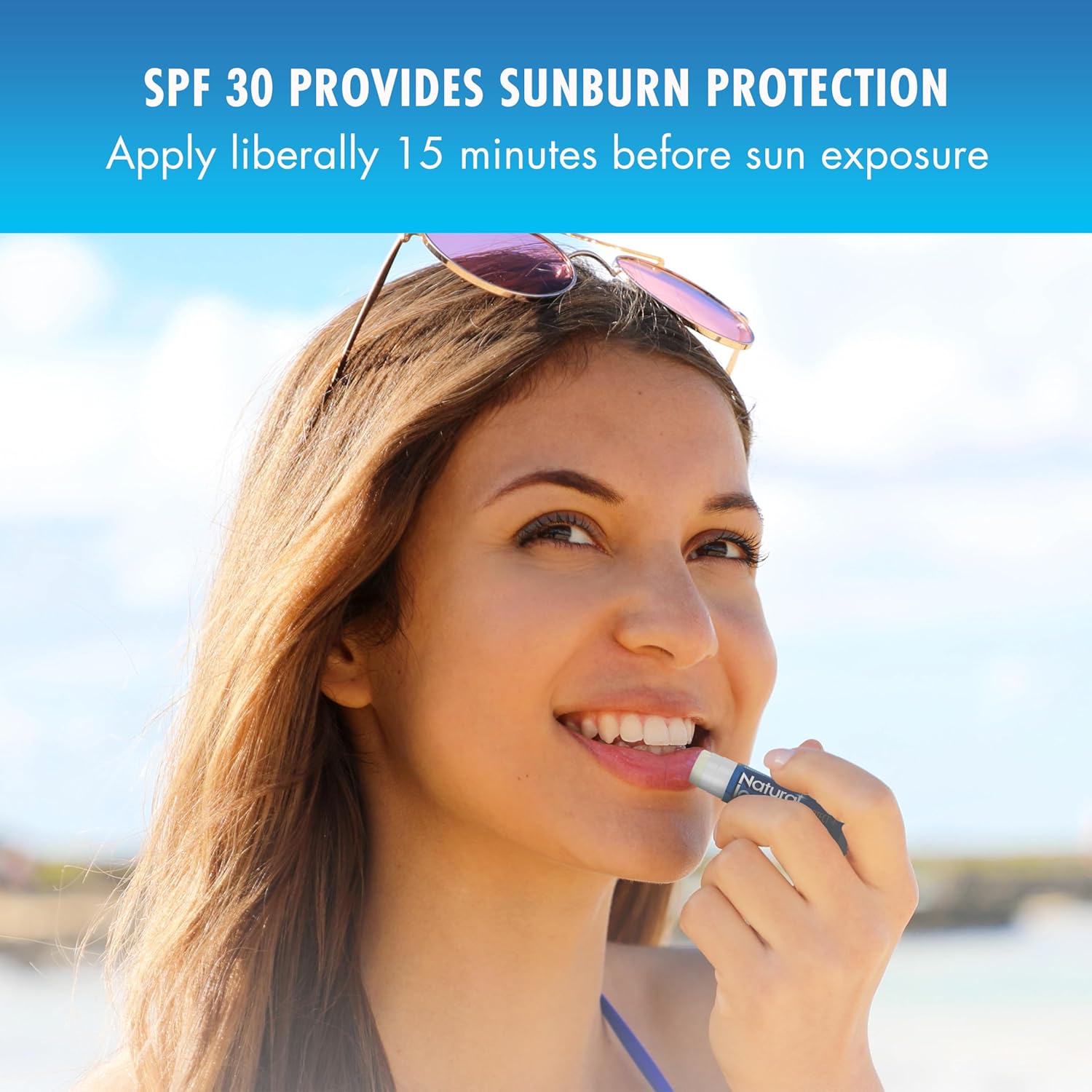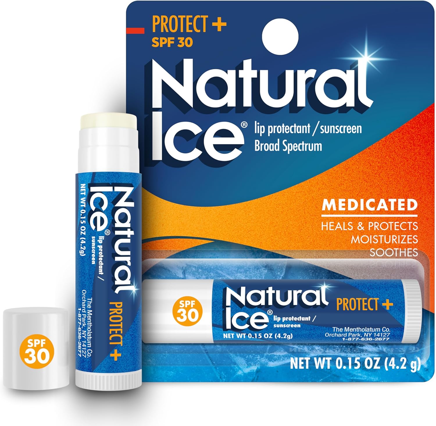 - Natural Ice (R) Sport sunscreen lip balm goes on smooth and protects your lips from sun, wind, cold and heat