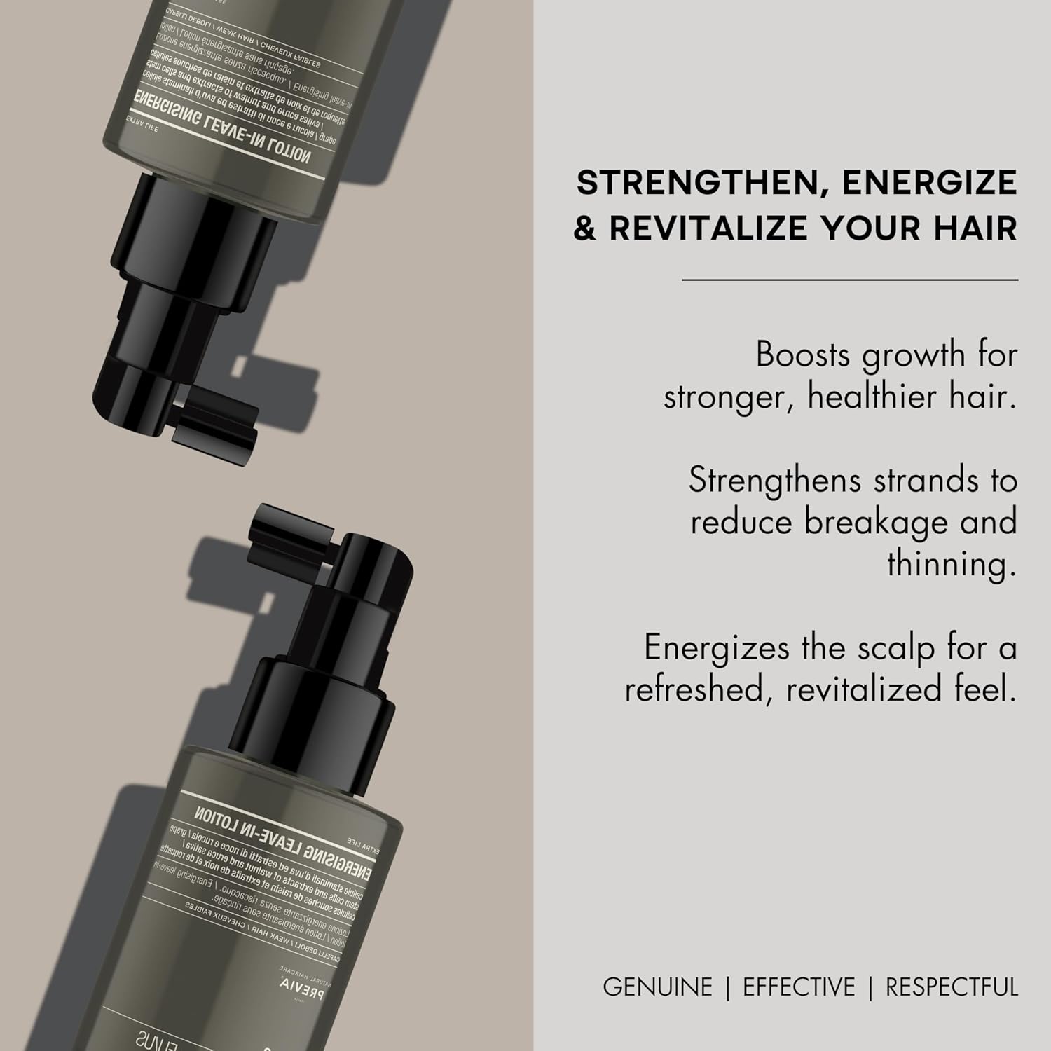 - Unveil Fuller Hair: Experience the transformative power of our hair treatment, designed to enhance your hair's fullness and strength. The PREVIA energising leave-in lotion is ideal for those seeking to enjoy holistic hair products with genuine, long-lasting results