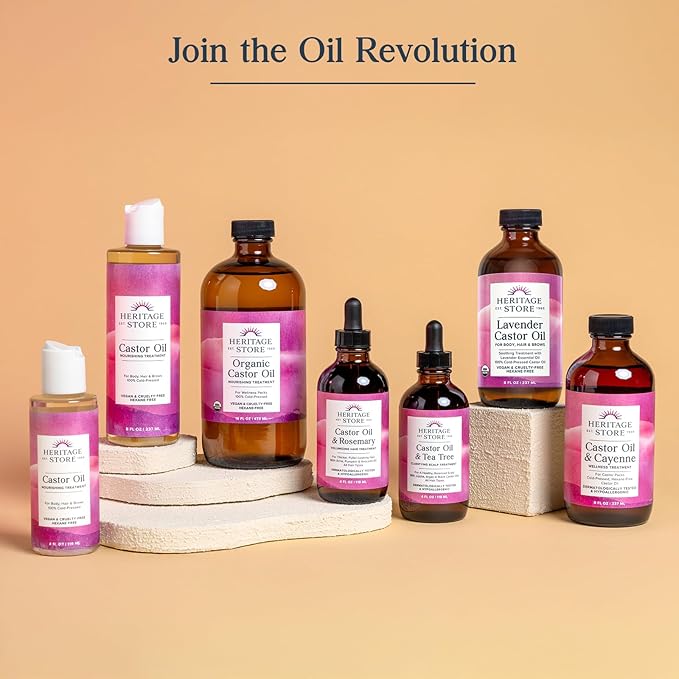 - Good for People & Planet - Organic, hexane free, vegan, cruelty free and packaged in amber glass to help preserve product freshness, Heritage Store Organic Castor Oil with Lavender Oil is triple tested in our state-of-the-art lab in Utah to ensure purity and quality.