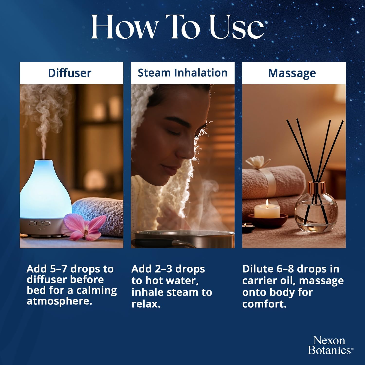 - Restful Ambiance: The aroma of this blend encourages calm, relaxing, and peaceful environment; Place a few drops on your pillow, comforter, or bedsheet at night.