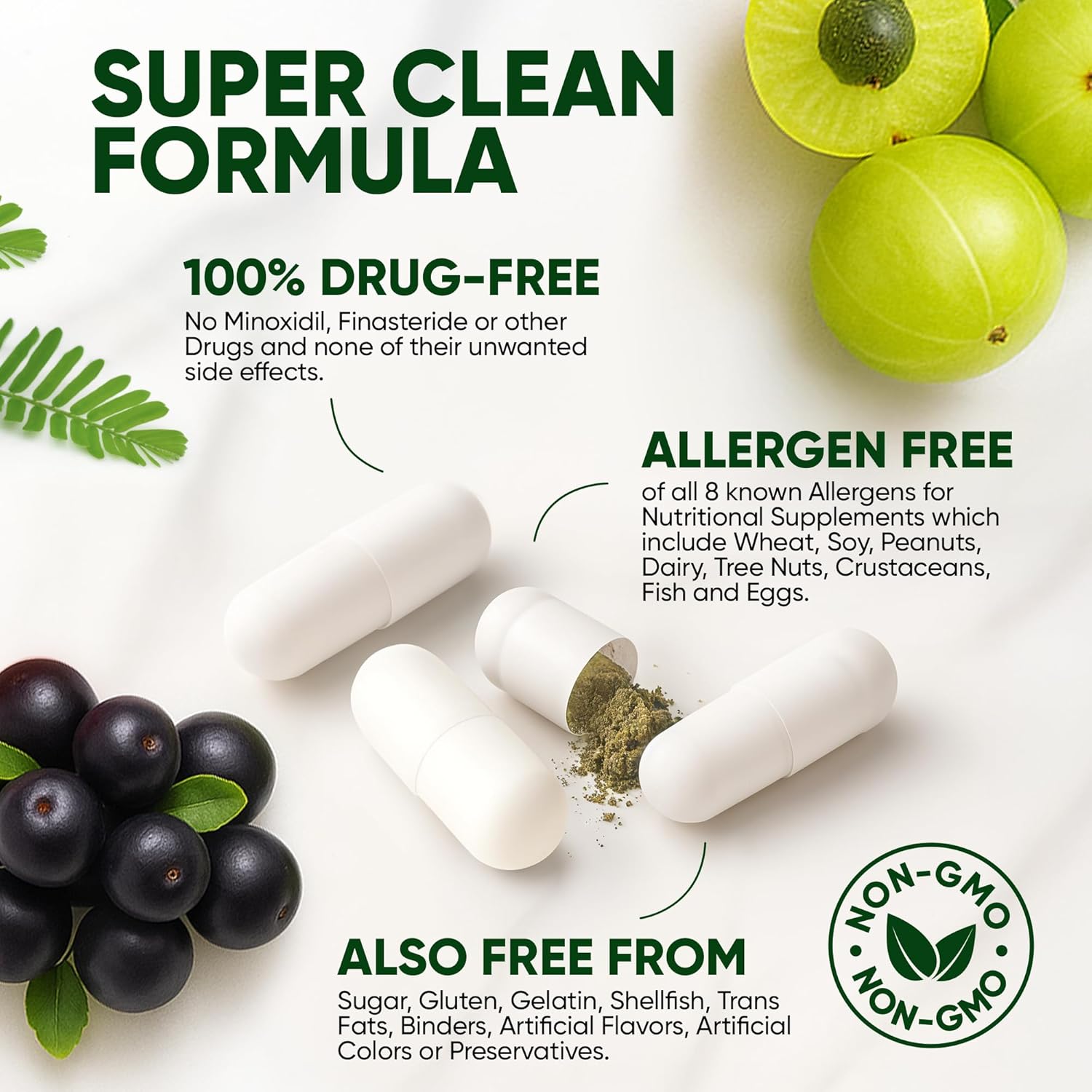 - Clinically Proven: To Grow Significantly Thicker Hair & Fuller Hair With Dramatically Reduced Hair Fall – All Within Just 60 Days, With Even More Results at 90 Days. A Natural, 100% Drug-Free Hair Growth Supplement For Hair Thinning and Hair Loss; With No Side Effects