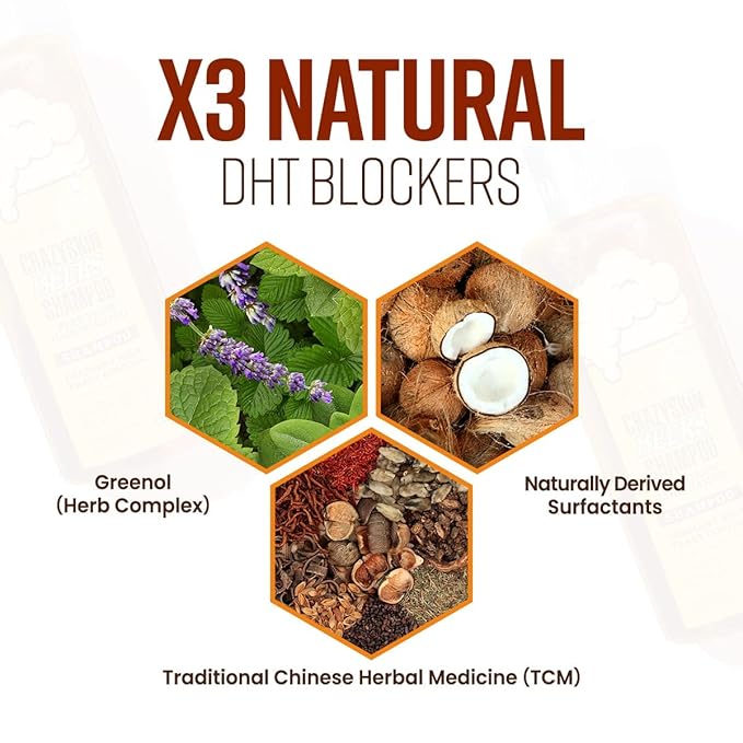 - ๐บ NATURAL DHT BLOCKERS : Led by Beer Yeast, this shampoo has patent natural ingredients that promotes new hair growth and prevents further hair loss ; Traditional Chinese Herbal Medicine, Greenol(Herb Complex - Lavender/Bergamot/Freesia/Peppermint/Chamomile/Rosemary), Natual derived surfactants
