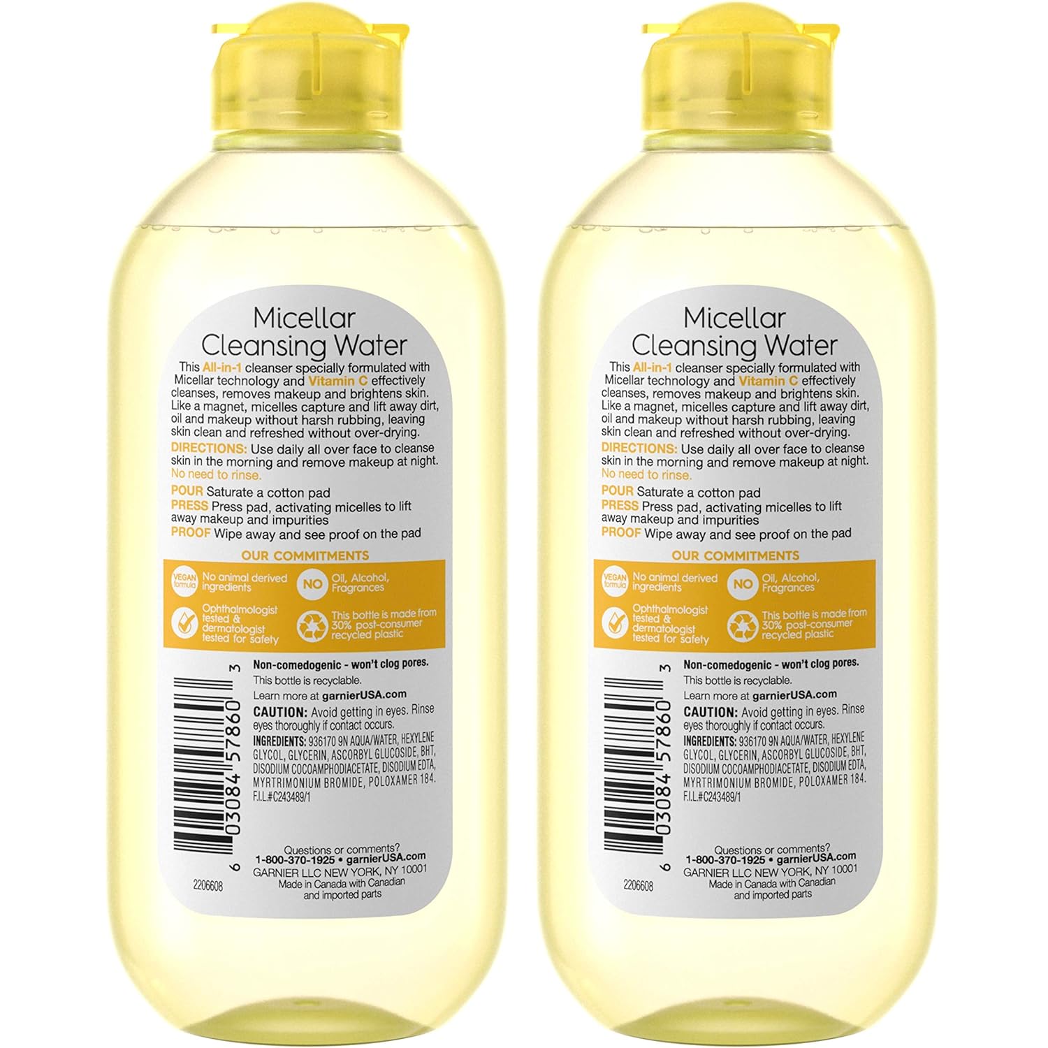 Garnier Micellar Water with Vitamin C, Facial Cleanser & Makeup Remover, Brightening & Hydrating, For All Skin Types, Vegan, Cruelty Free, 13.5 Fl Oz (400mL), 2 Count