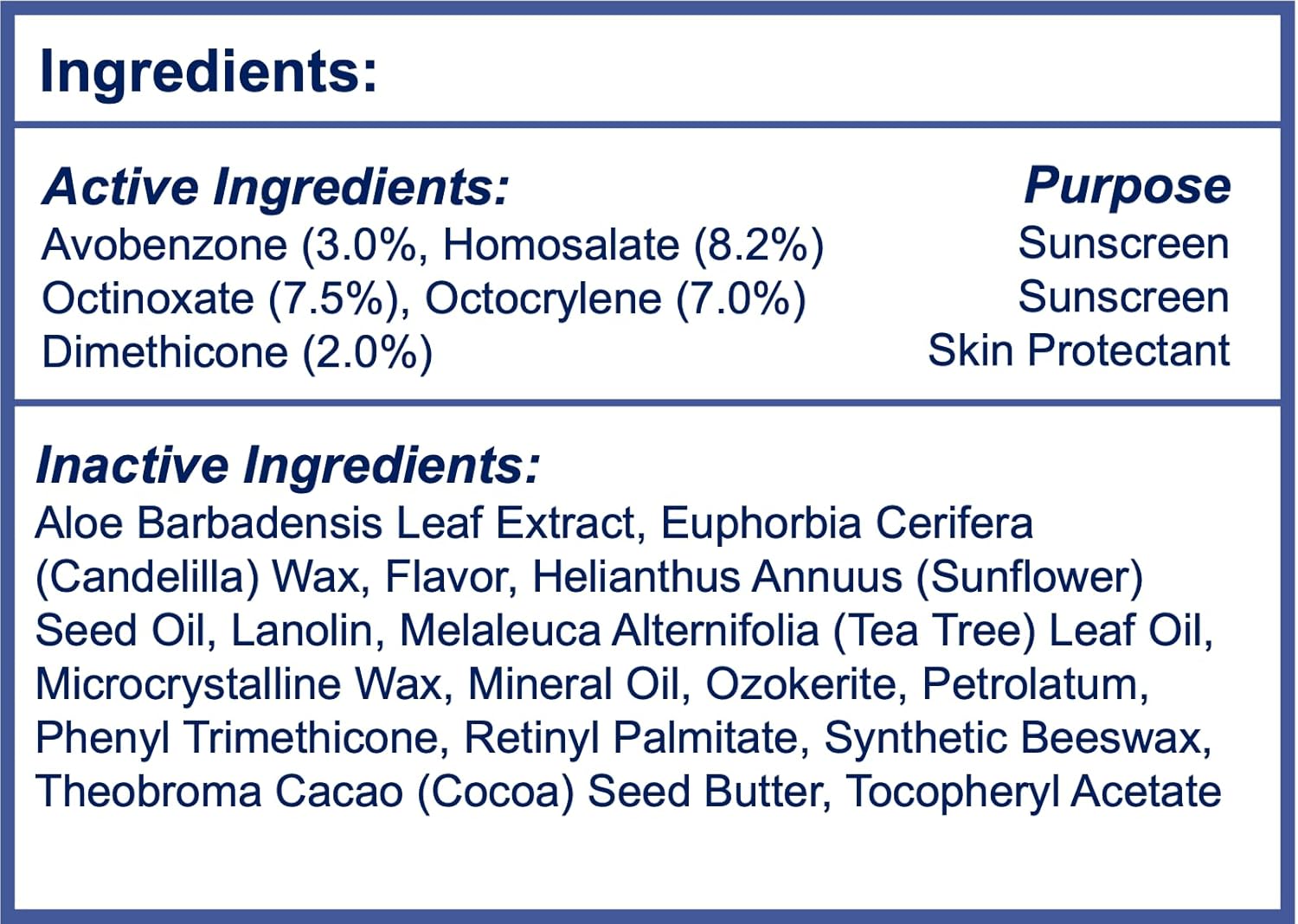 - MOISTURIZING AND MEDICATED LIP BALM FOR DRY AND CHAPPED LIPS: Our Lip Balm SPF 30 is formulated with ingredients like Cocoa Butter, Aloe, Sunflower Seed Oil, Vitamin E and Tea Tree Oil to soothe, repair and replenish your dry, cracked and chapped lips.