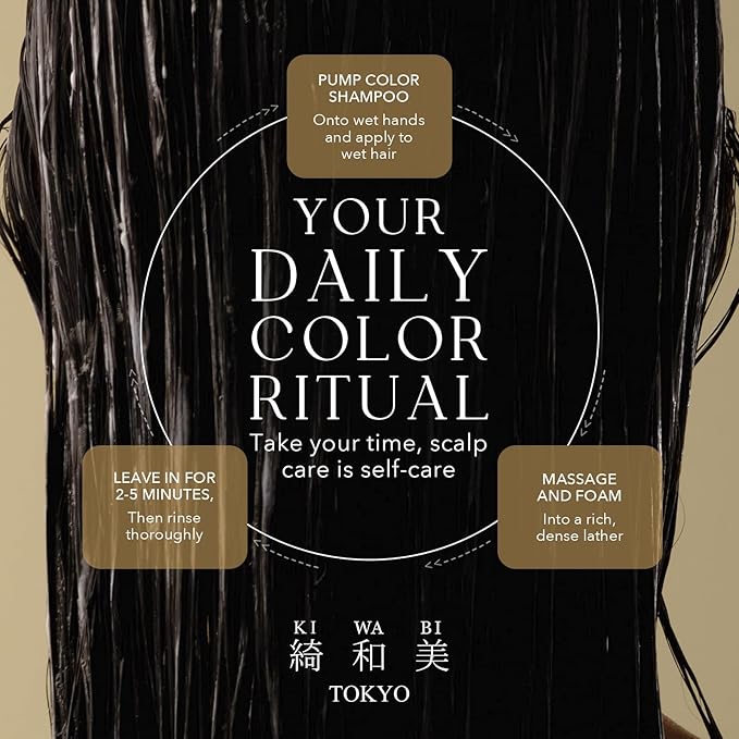 KIWABI Hair Color Shampoo for Gray Coverage – Gradual, All Natural Hair Dye Shampoo for Women & Men – Hydrating, Sulfate-Free, Ammonia-Free, Vegan Scalp Care with 31 Botanicals (Dark Brown)