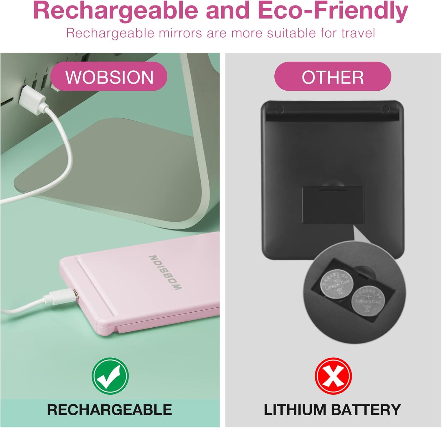 WOBSION Lighted Compact Mirror, Rechargeable Travel Makeup Mirror with Light,1x/3x Magnifying,300°Flip Folding Portable Mirror, 2-Sided Magnetic Switch Handheld Mirror,Dimmable,Gifts for Girls