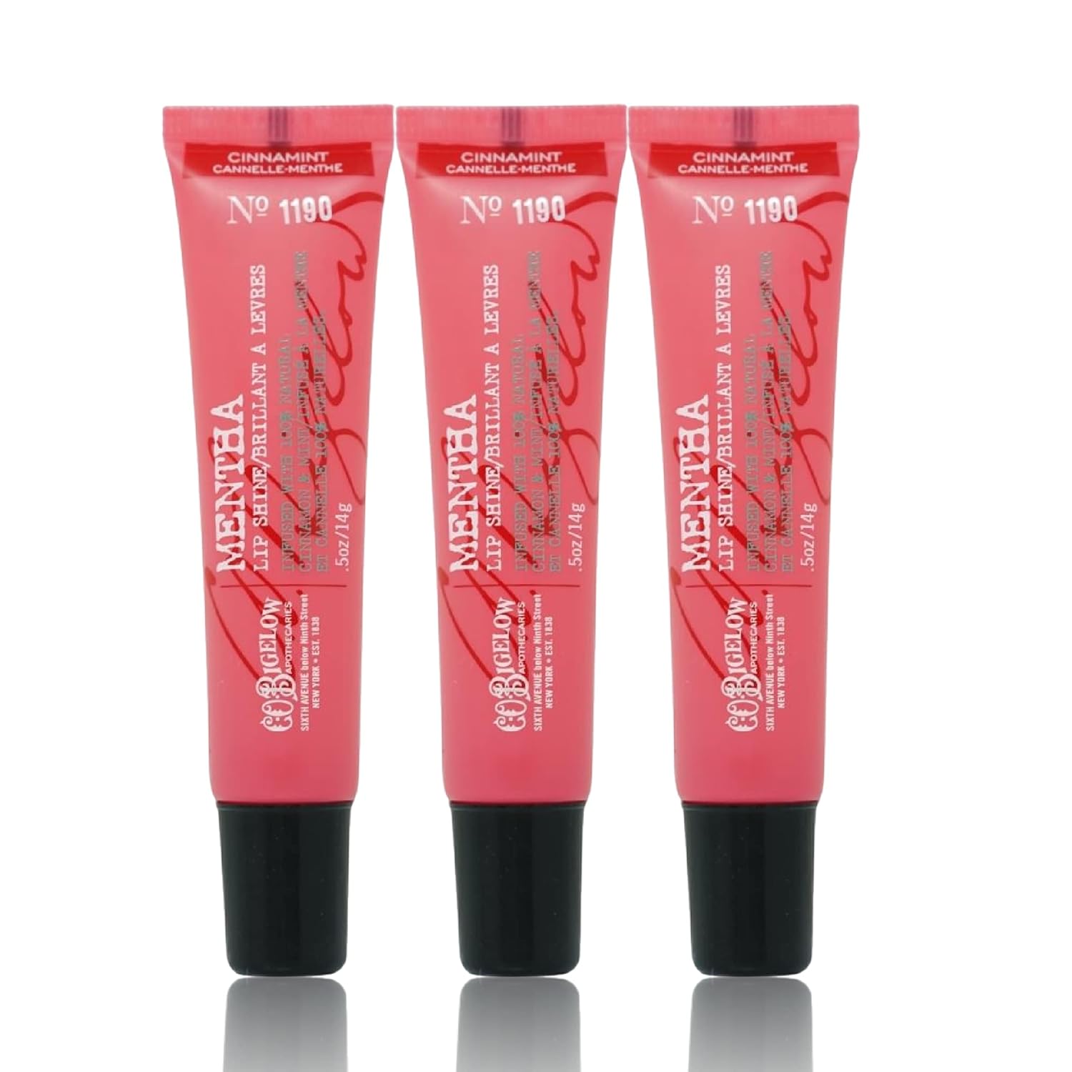 C.O. Bigelow Cinnamint Mentha Lip Shine Balm Tubes, Pack of 3 Bulk Lip Gloss with Cinnamon & Peppermint Oil, High Gloss Shine Finish, 0.5 oz