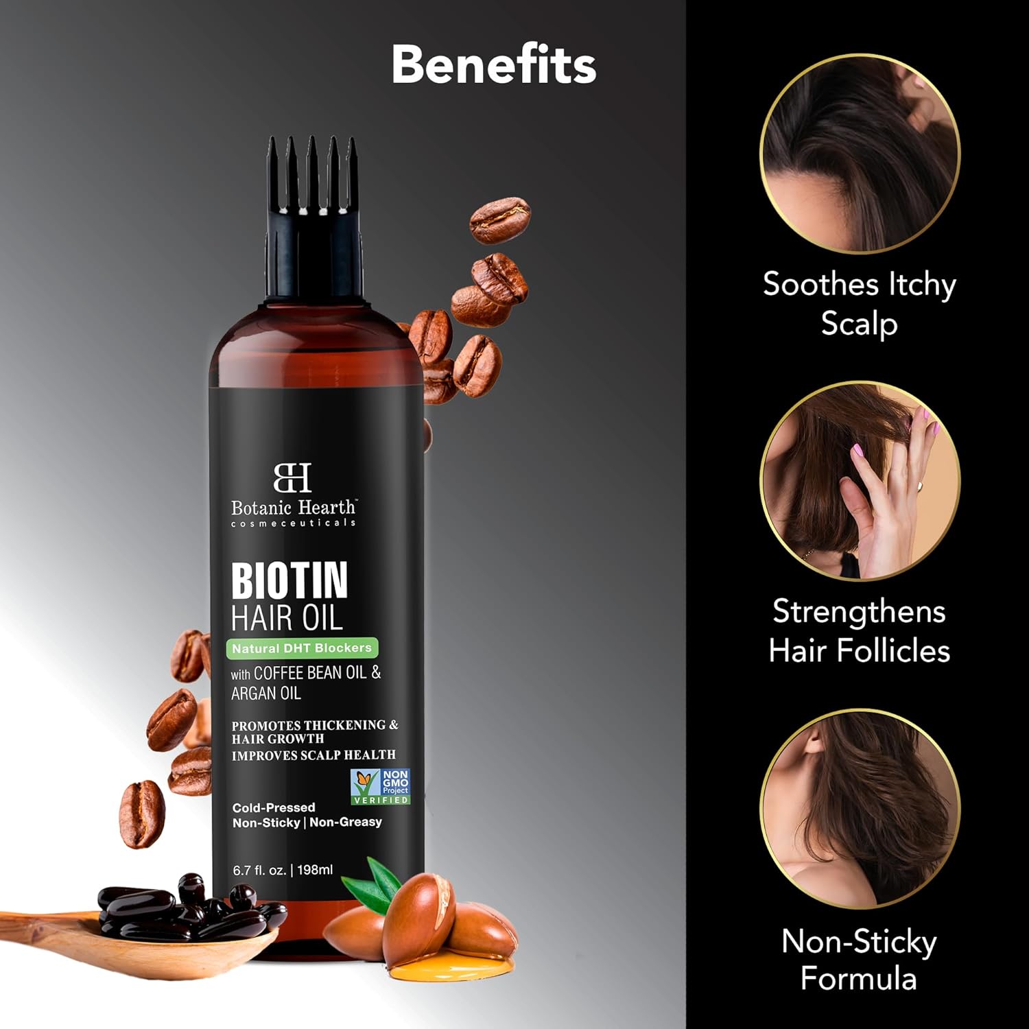 - Helps Fight Hair Thinning: This Biotin oil for hair growth contains ingredients like argan and coffee bean oil that help add volume to hair and promotes thickness. Also considered as a biotin hair growth serum, it aims to make hair follicles stronger