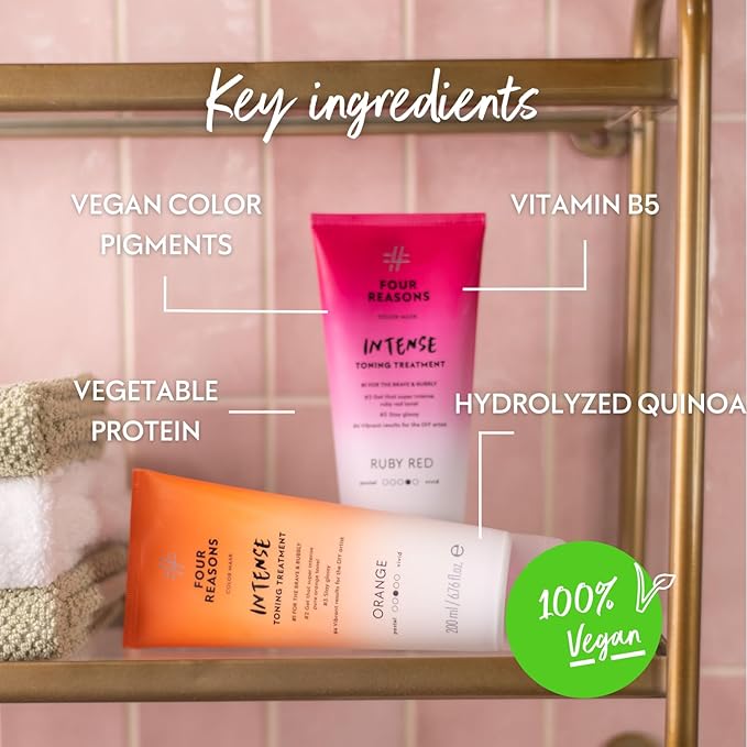 FOUR REASONS Color Mask INTENSE - Orange, 6.76 fl oz - Intensive Toning Treatment - Color Depositing Conditioner - Semi Permanent Hair Dye for Lightened and Colored Hair - 100% Vegan