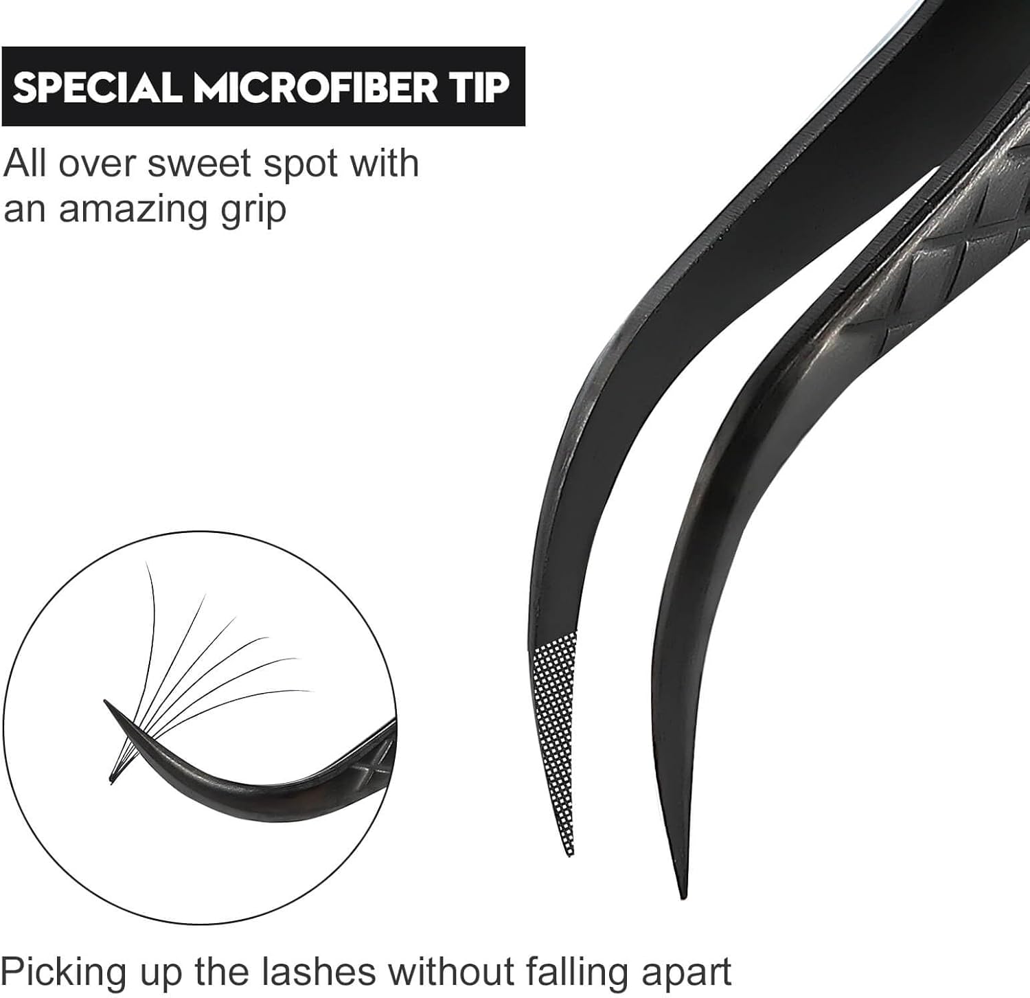 - ★FIBER TIP LASH TWEEZERS:Specifically designed with a microfiber tip Special microfiber tip—All over sweet spot with an amazing grip, picking up the lashes without falling apart.For professional lash artists use & beginner Friendly.