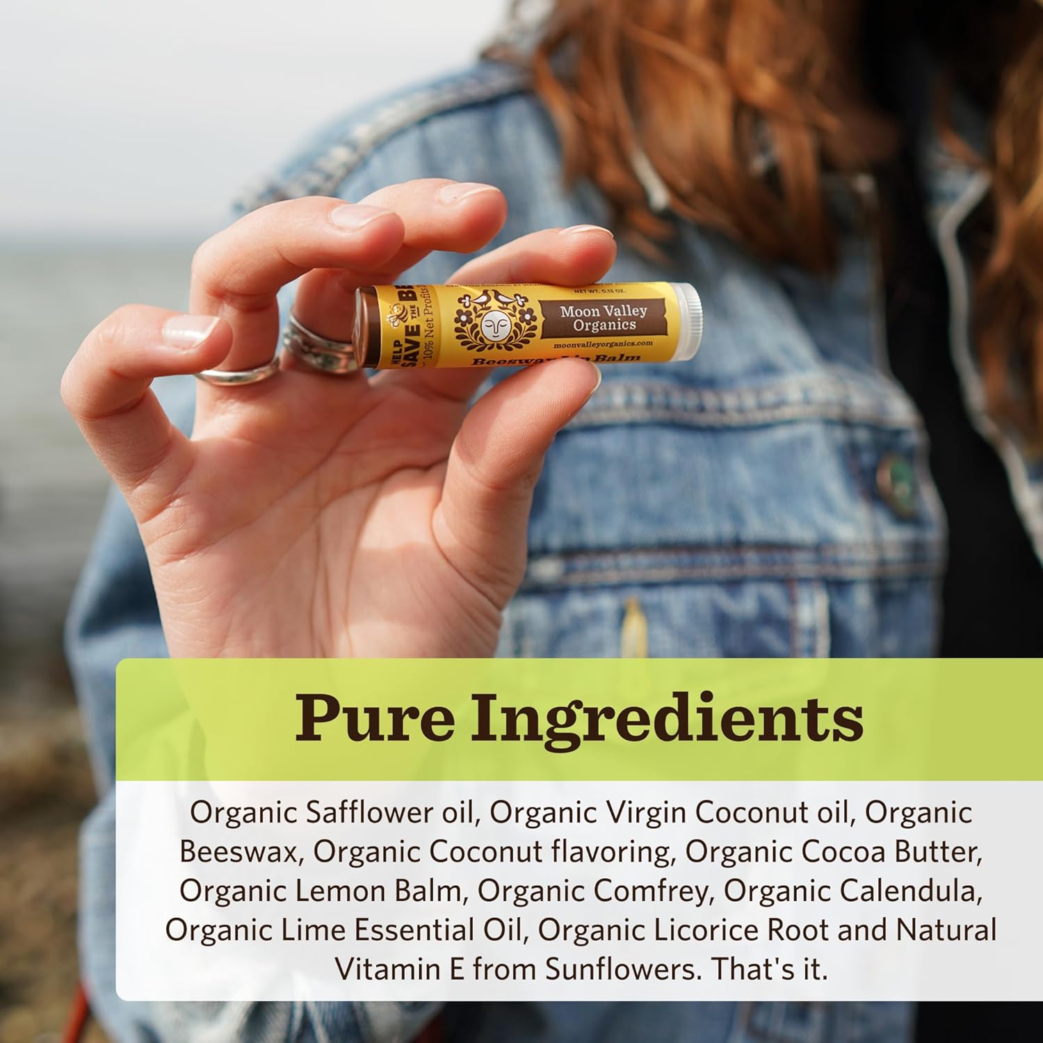 Moon Valley Organics Beeswax Lip Balm for Moisturizing Lips and Cuticles (TROPICAL COCONUT LIME, 4 Count (Pack of 1))