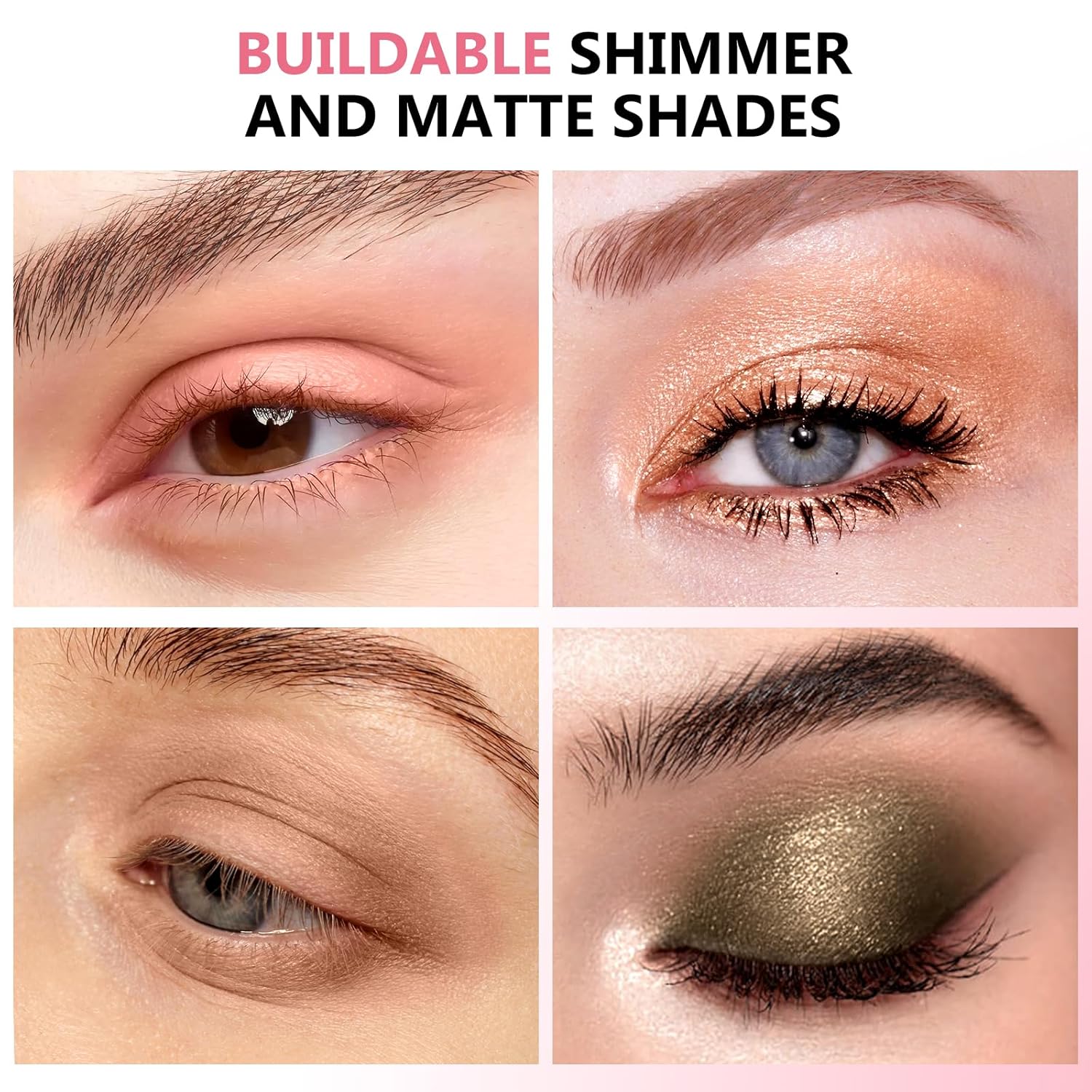 - 【Buildable】 Matte and shimmer shades are easy to layer and blend. Layering high-shine glittery colors on top of matte base adds a dreamy, sexy effect to your eye Matte and shimmer, giving you a more vibrant appearance.