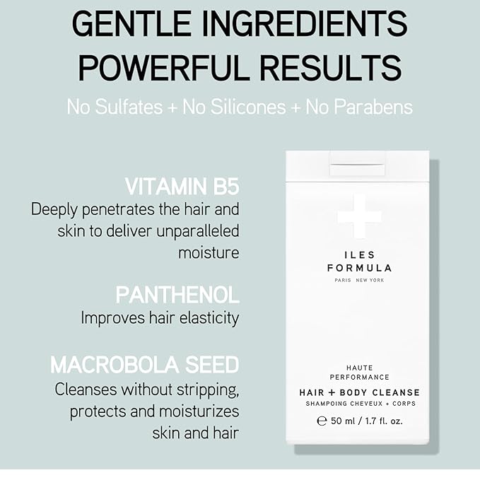 ILES FORMULA Haute Performance Hair + Body Cleanse Mini - Gently Cleanse & Nourish Hair & Body - Sulfate, Silicone & Paraben Free, (50 ML)