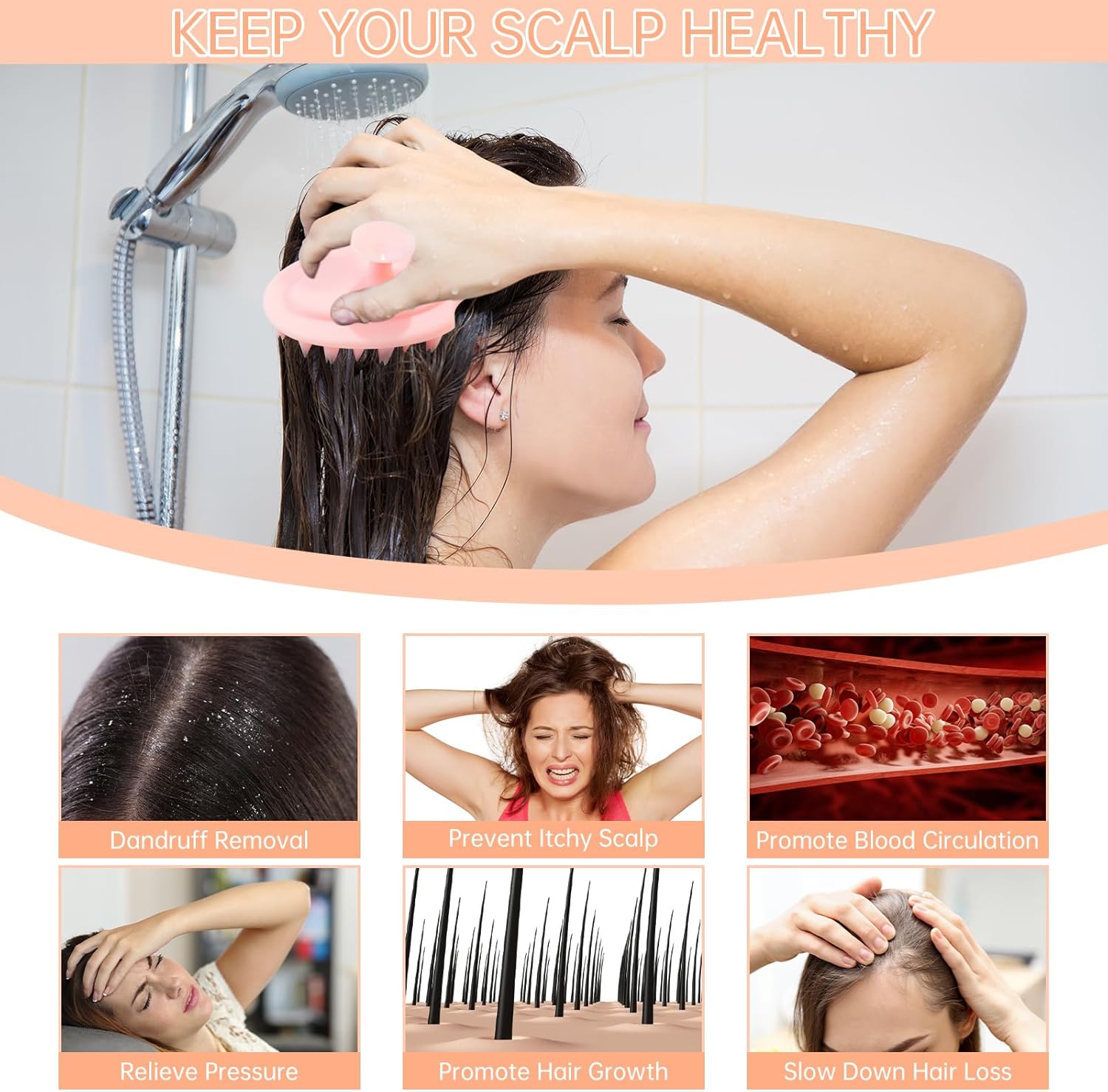 - Two Bristles Heads: The scalp massager brush is designed with 2 two different types of silicone bristles heads, more soft and comfortable, not damaging your scalp. By gently massaging the scalp, this brush provides a relaxing and invigorating scalp massage experience, relieving tension and stress while showering or shampooing.