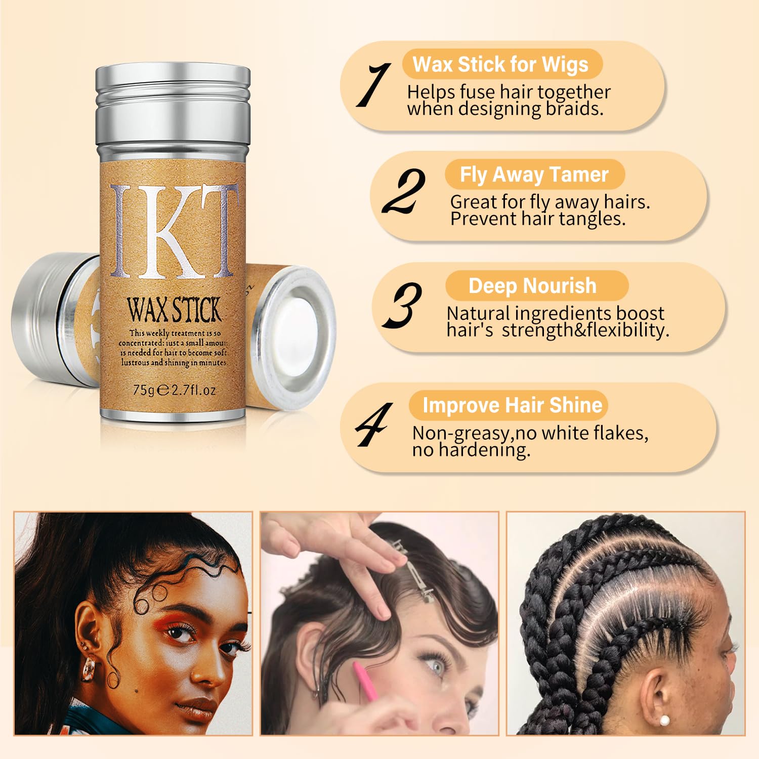 - 【The Set Included】 2.75 oz hair wax stick,2 hair finishing stick,3 high quality hair combs including a rat-tail comb, brushing brush and edge brush.It comes with 4 pcs topsy tail hair tool to help you create various hairstyles. It is a practical and durable set of tools.
