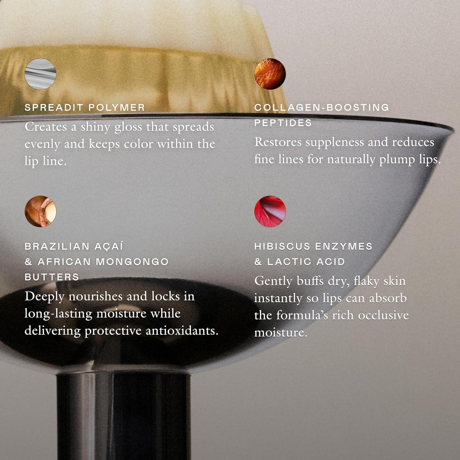 - EXFOLIATES AND REFINES: Formulated with Hibiscus Enzymes, Lactic Acid, and Pyruvic Acid, it gently exfoliates to remove dry flakes and smooths lip texture, helping to improve moisture absorption and diminish the look of ashiness.