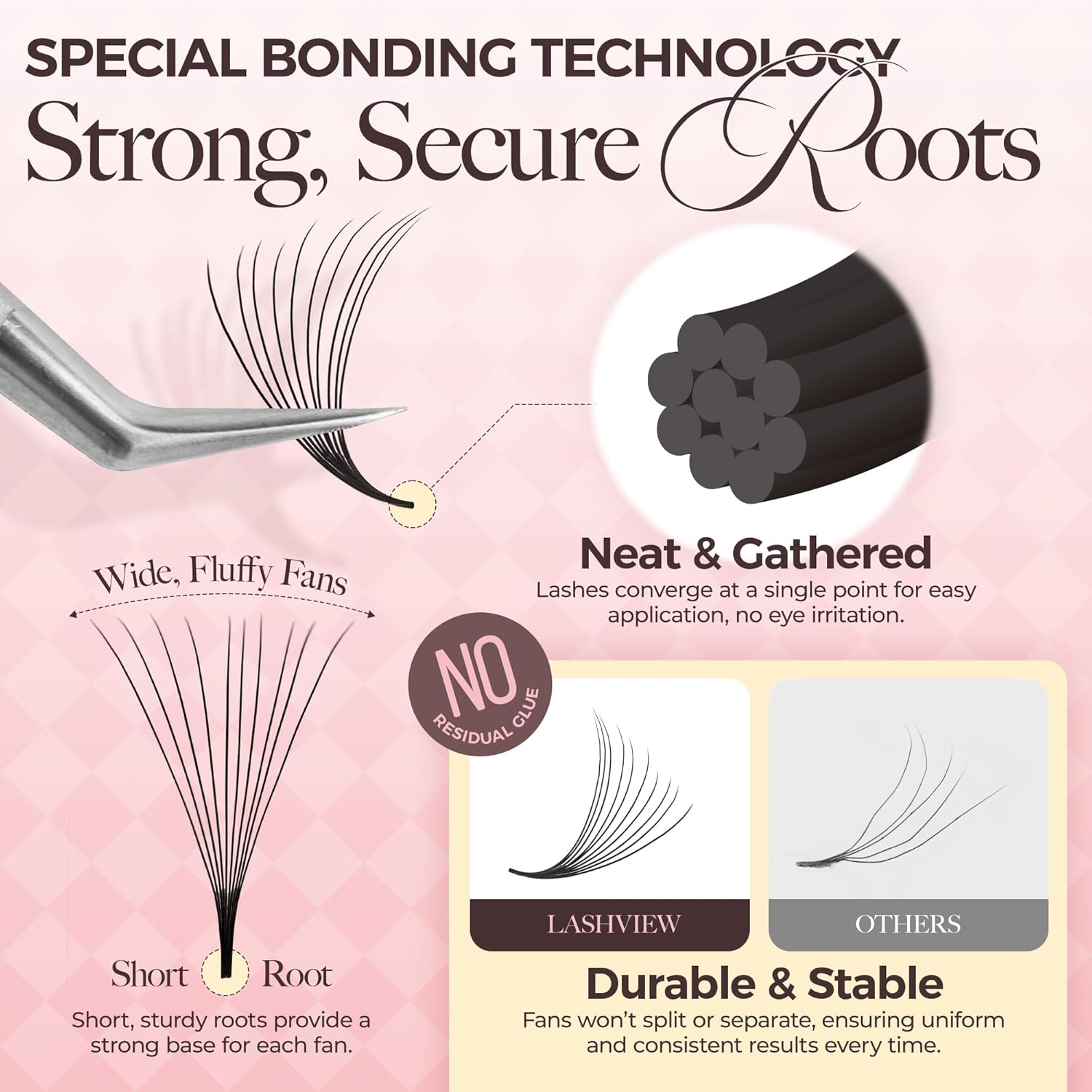 - Abundant Volume in Bulk: LASHVIEW premade lash fans are available in large quantities of 600 pcs and 1000 pcs, offering a more economical choice without compromising on quality