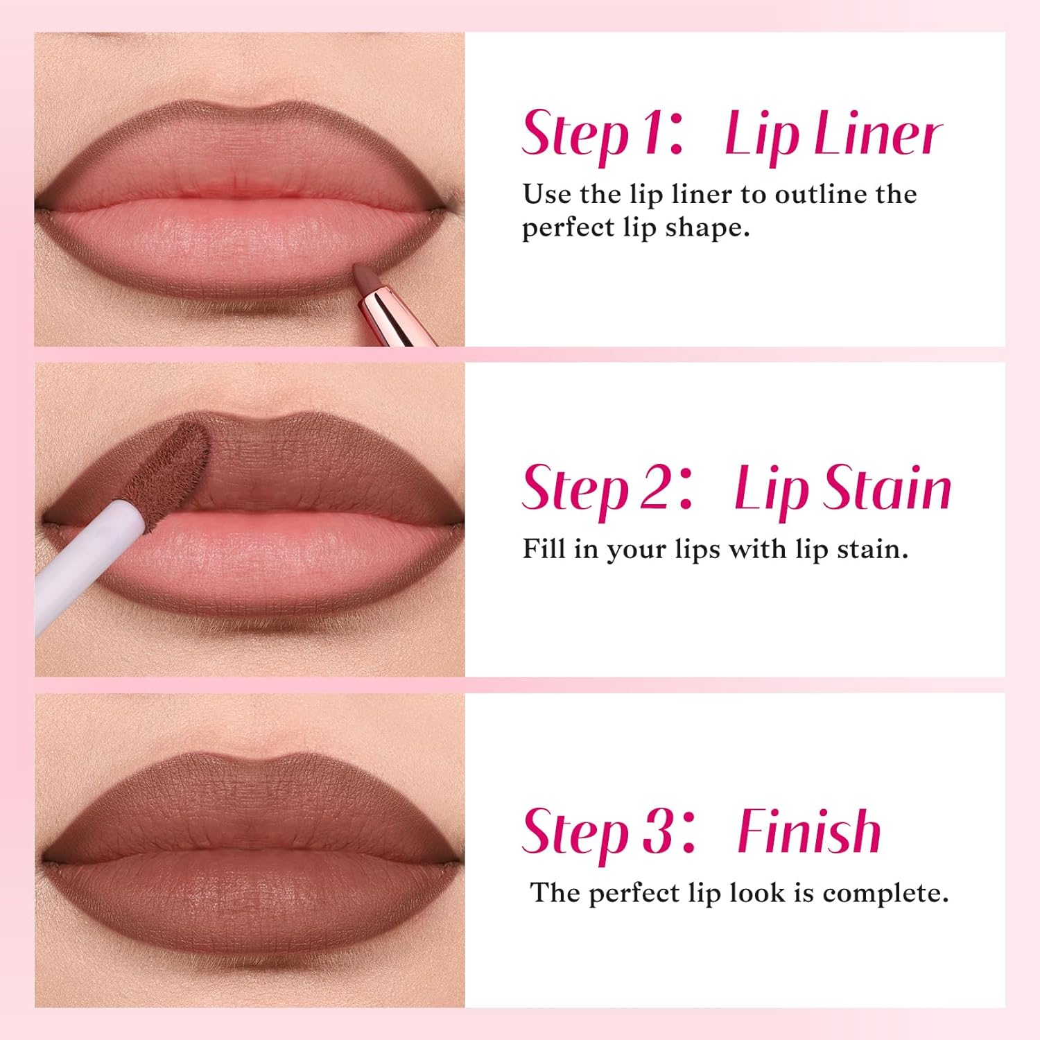 - 【Easy to Apply & Safe Formula】 Begin by outlining your desired lip shape with the lip liner, then fill in your lips with lipstain to achieve the perfect look. Beginners can also use it easily. Meanwhile, we use safe vegan formulas that are not tested on animals, so you can use them with more confidence.