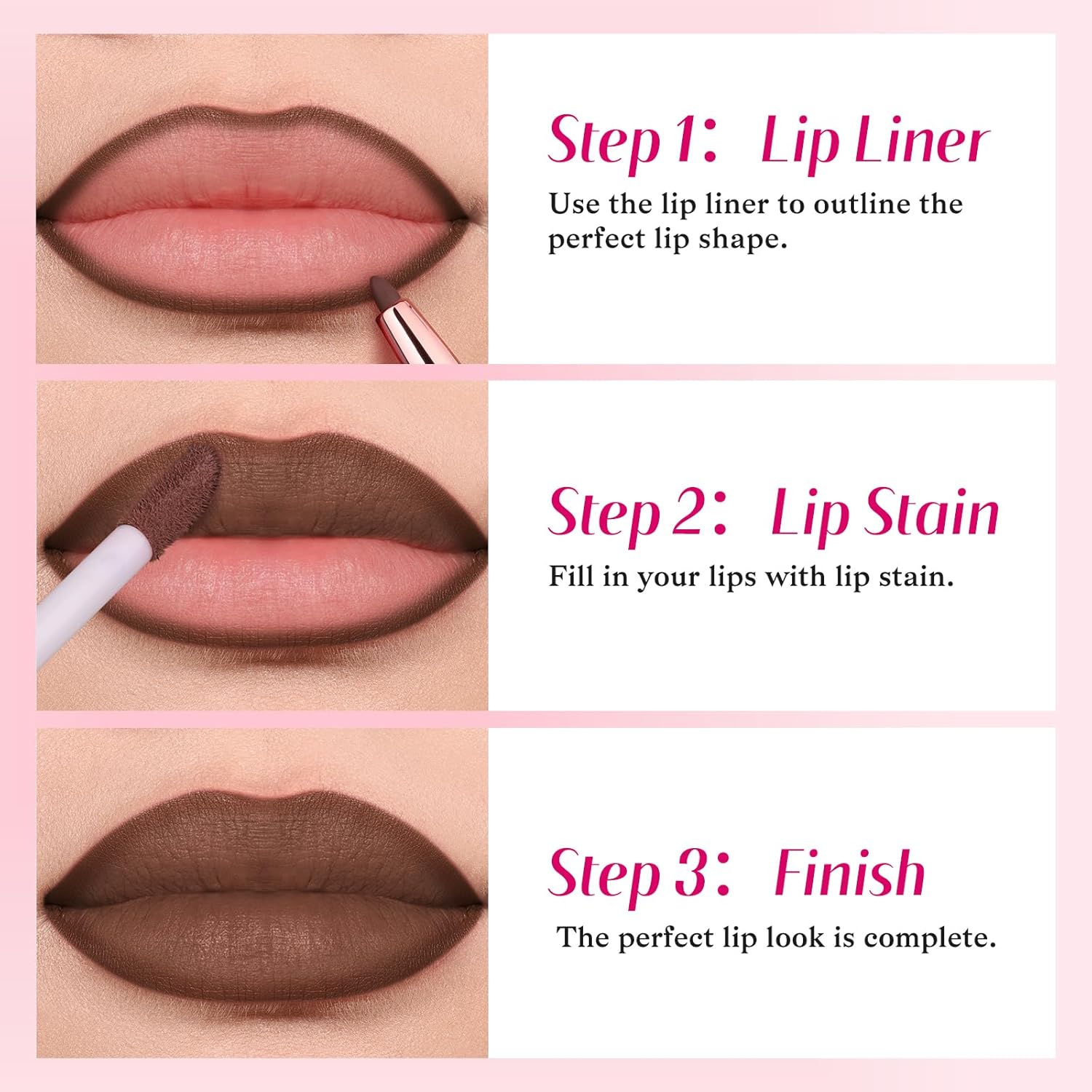- 【Easy to Apply & SAFE Formula】 Begin by outlining your desired lip shape with the lip liner, then fill in your lips with lipstain to achieve the perfect look. Beginners can also use it easily. Meanwhile, we use safe vegan formulas that are not tested on animals, so you can use them with more confidence.