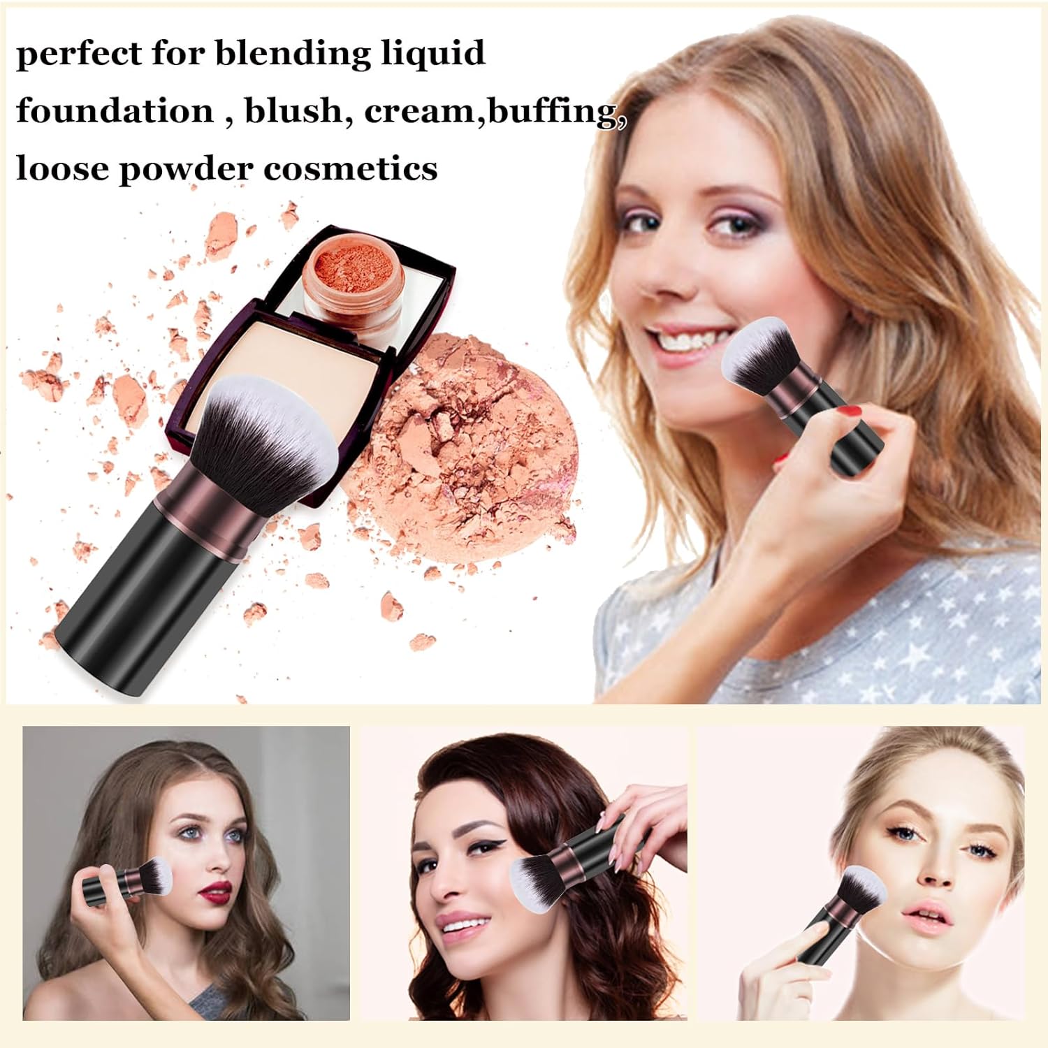 Retractable Makeup Brush,Travel Powder Kabuki Makeup Brush Face Blush Brushes for Blending Liquid, Foundation, Blush, Bronzer, Buffing, Sunscreen,Flawless Cosmetics