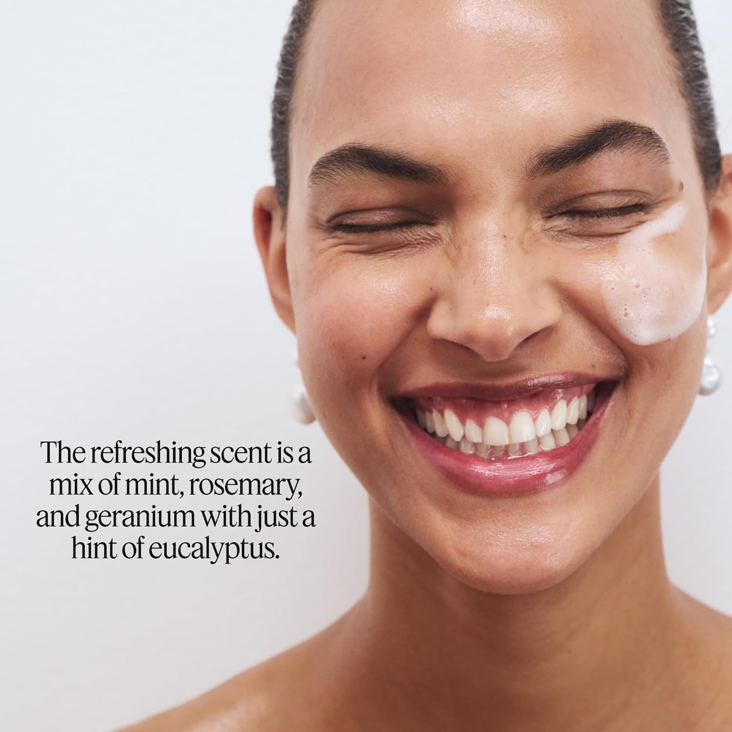 - Makeup Remover: As you massage the gel cleanser over damp skin, it transforms into a dense foam, lifting away oil, dirt, impurities, and makeup. The scent—a mix of mint, rosemary, and geranium—is refreshing and spirit-boosting.