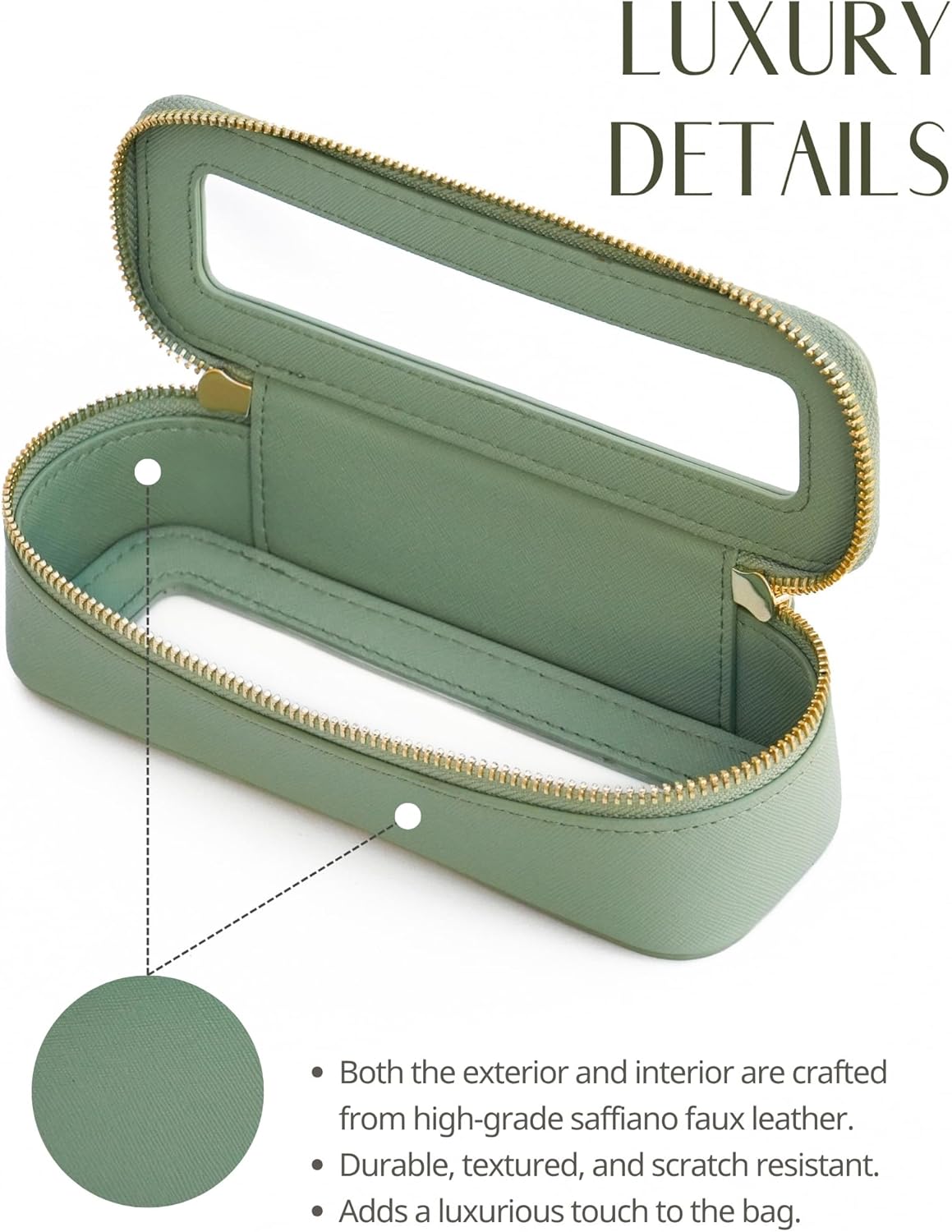 - [Slim Brush Makeup Bag] - This slim makeup bag is 7.5'' x 2.5'' x 2.1'' (19.1cm x 6.4cm x 5.3cm), ideal for storing makeup brushes and daily mini essentials like lip balms, hair ties, jewelry, Air Pods, charging cords, and medications. Slip it into your purse, backpack, everyday tote, or travel bag for convenient access to your essentials.