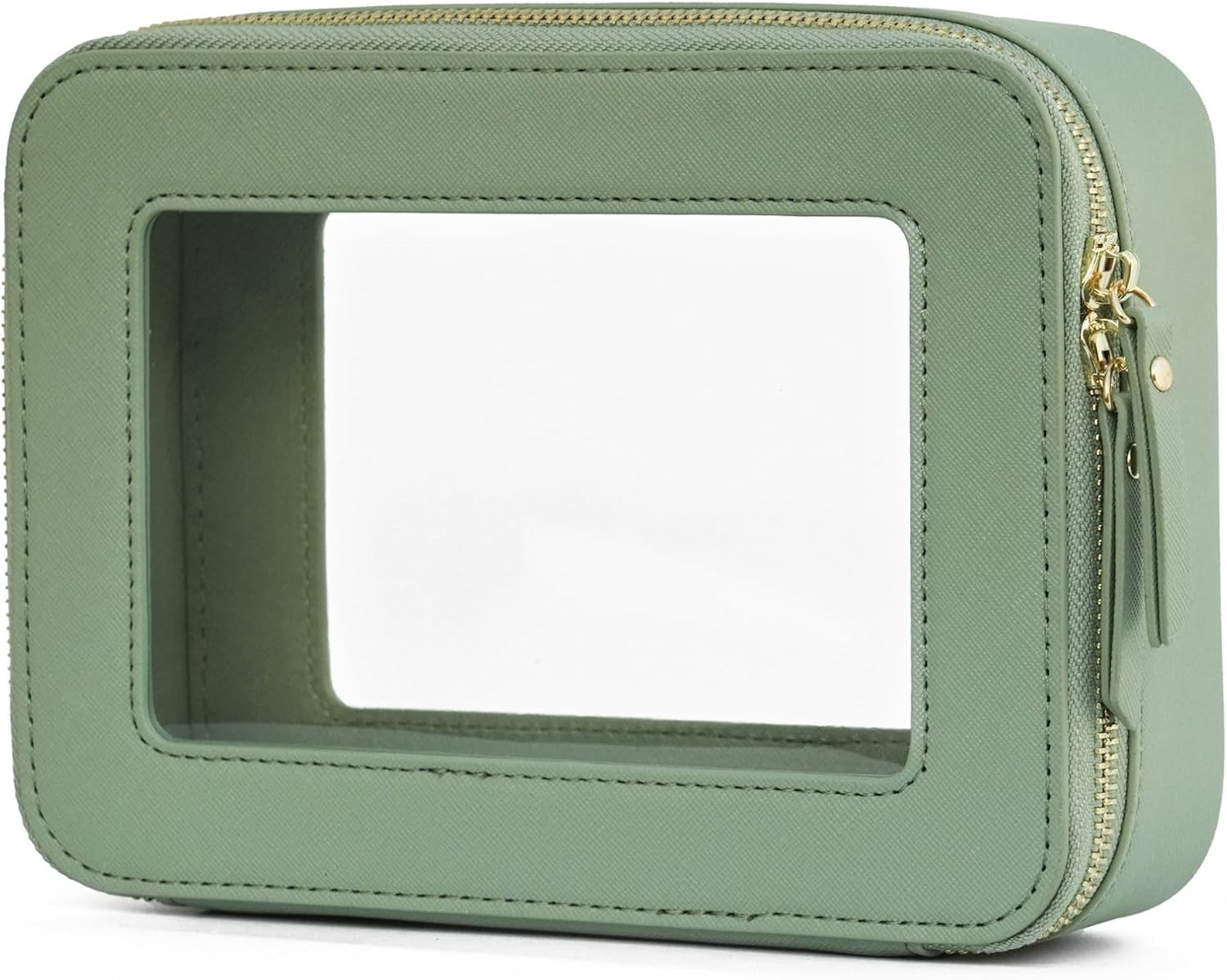 - [Premium Material and Durability] – The clear cosmetic case, both the exterior and interior, is crafted from high-grade saffiano faux leather, which is highly scratch resistant, durable and exceptionally easy to keep clean. It features a smooth zipper for secure closure, and elegant light gold metal hardware accents, adding a luxurious and sophisticated touch to the bag's overall design.