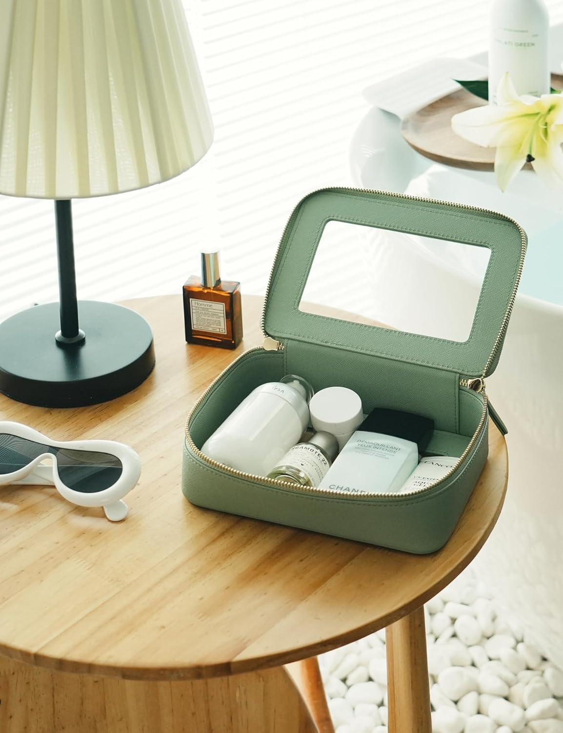 - [Compact and Portable] – The green travel make up bag measures 8.3'' x 6.1'' x 2.4'' (21cm x 15.5cm x 6cm), designed to offer a compact and travel-friendly solution for organizing your makeup and toiletry essentials. It can be easily fit into a variety of bags, whether you prefer to carry it in a handbag, tote, or travel luggage.