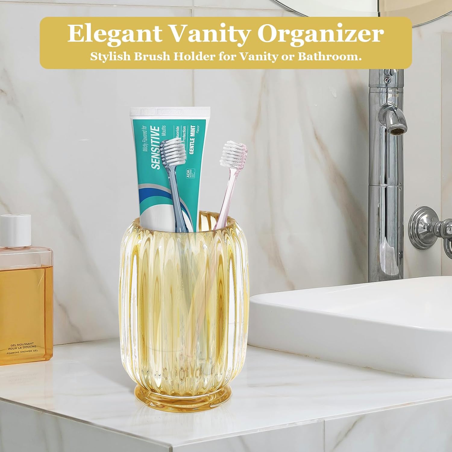 - Elegant Vanity Organizer โ A stylish makeup brush organizer cup that adds a touch of sophistication to your vanity, bathroom counter, or desk.