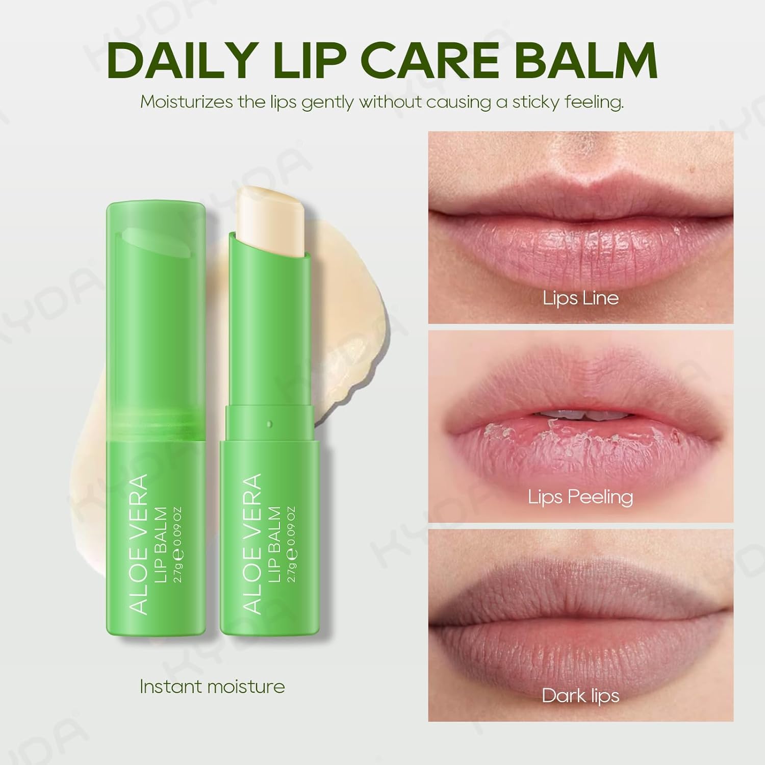 KYDA 3 Pcs Aloe Vera Lip Balm, Deep Hydrating Tinted Lip Balm, Reduce Fine Lines, Daily Lip Moisturizer for Dry Cracked Lips, with Real Aloe Vera, Colorless Finish