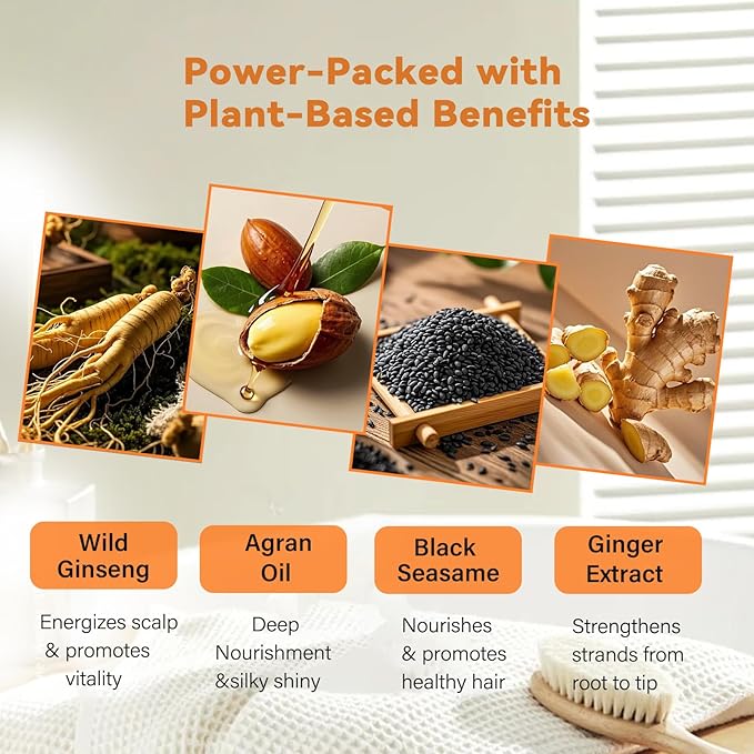- [Natural Hair Dye Shampoo] Natural hair dye shampoo is infused with active ingredients: Argan Oil to lock in moisture and prevent drying, Wild Ginseng restores original color, black seasame deeply nourishes hair, ginger extract strengthenes hair root. This hair dye shampoo brown is gentle on your hair and skin, creates you vibrant & healthy hair.